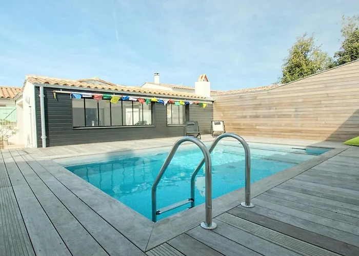يوجد المطبخ كامل التجهيز مع مرافق مجانية بما في ذلك المايكرويف والغلاية الكهربائية وأدوات المطبخ. يقع مكان الإقامة في سان مارتن دو ر على بعد 500 متر من L'insolite، ويقدّم الأطباق الأوروبية. تقع محطة حافلات Saint-Martin-de-Re - Cognacq Jay في غضون 10 دقيقة تقريبًا سيرًا على الأقدام من الفيلا، وتوفّر خيارات النقل في المنطقة المجاورة. تضمّ الفيلا المكونة من 3 حمام المسبح الخصوصي، وتوفّر بركة السباحة الخصوصية والحديقة لاستخدام الضيوف.